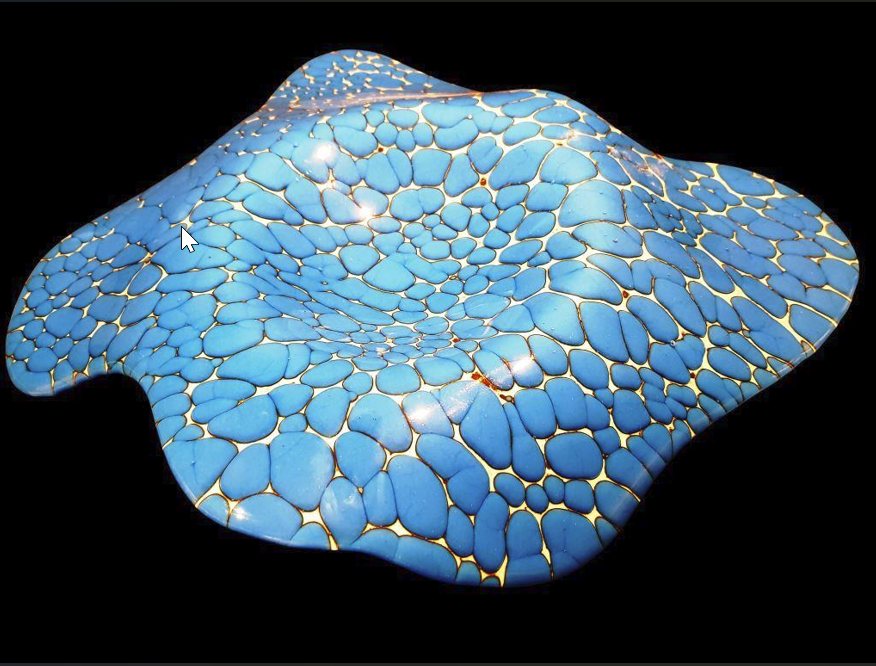By accident, some glass had run down to the bottom of the kiln and created beautiful structures resembling ice floes. This sparked Michael’s experiments with deep structures designed to mimic elements of nature.